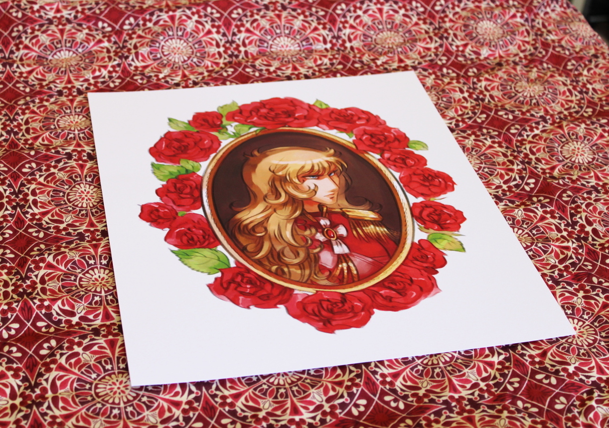 Art print - illustration featuring the one and only Lady Oscar. This is a large print, 30cm x 35cm (12'' x 14''). Printed on 100lb matte cover cardstock. Each print is signed on the back.
