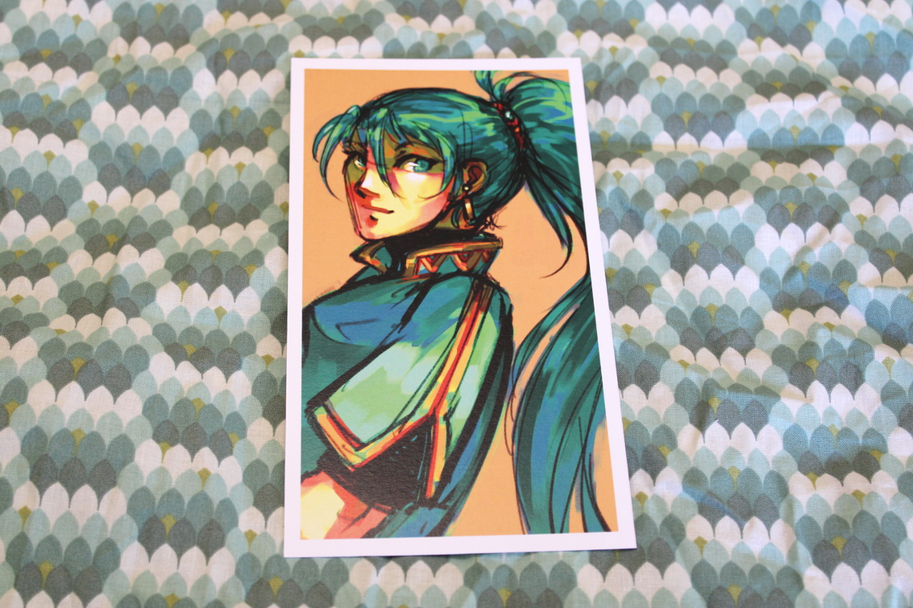 Art print - Lyn from Fire Emblem. Print is 11.5cm x 20.5cm (4.5'' x 8''). Printed on 100lb matte cover cardstock. Each print is signed on the back.