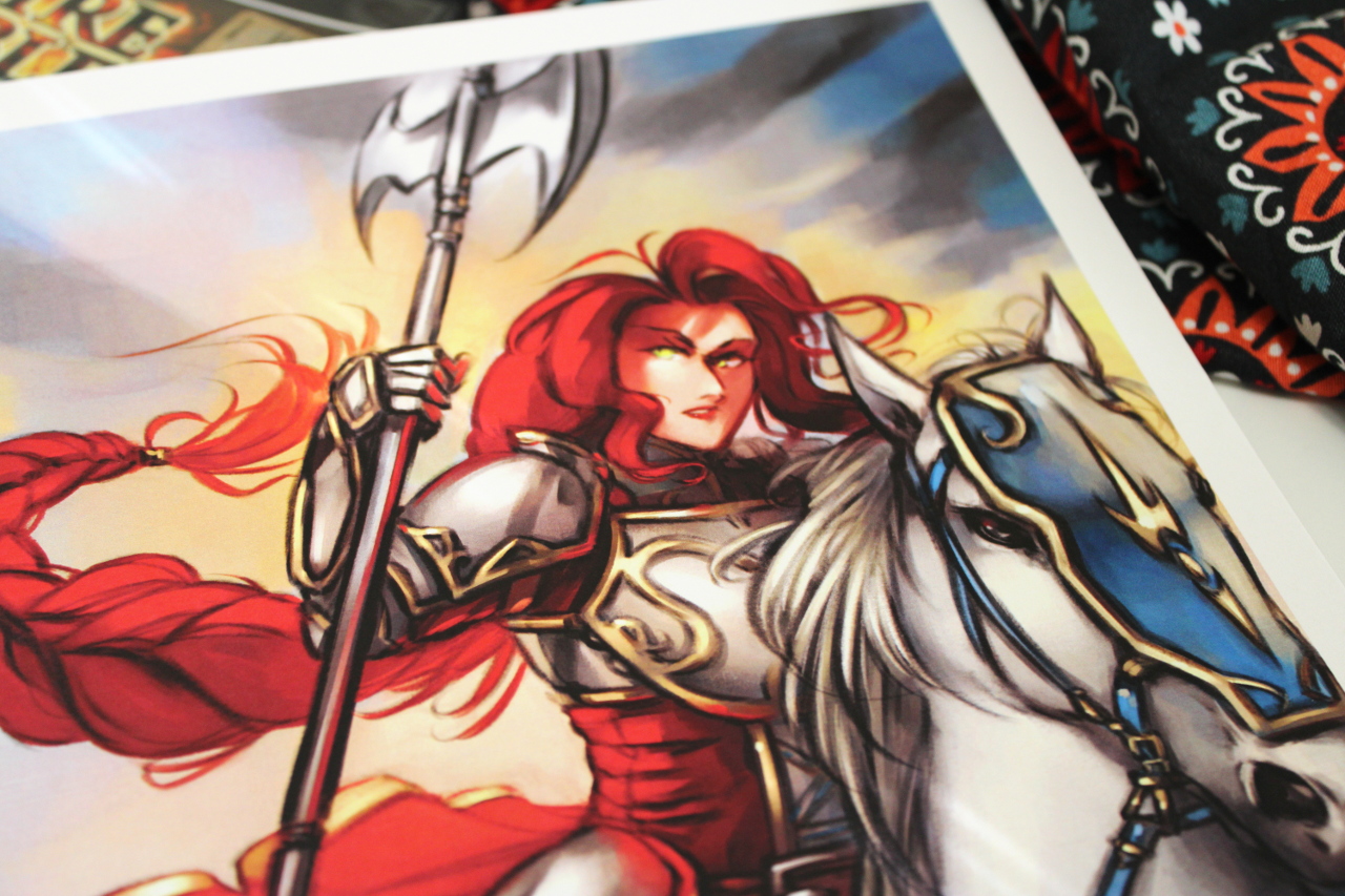Art print - Titania from Fire Emblem, originally featured in "Chop" digital zine. Print is 21cm x 29cm (8.3'' x 11.4''). Printed on 100lb matte cover cardstock. Each print is signed on the back.