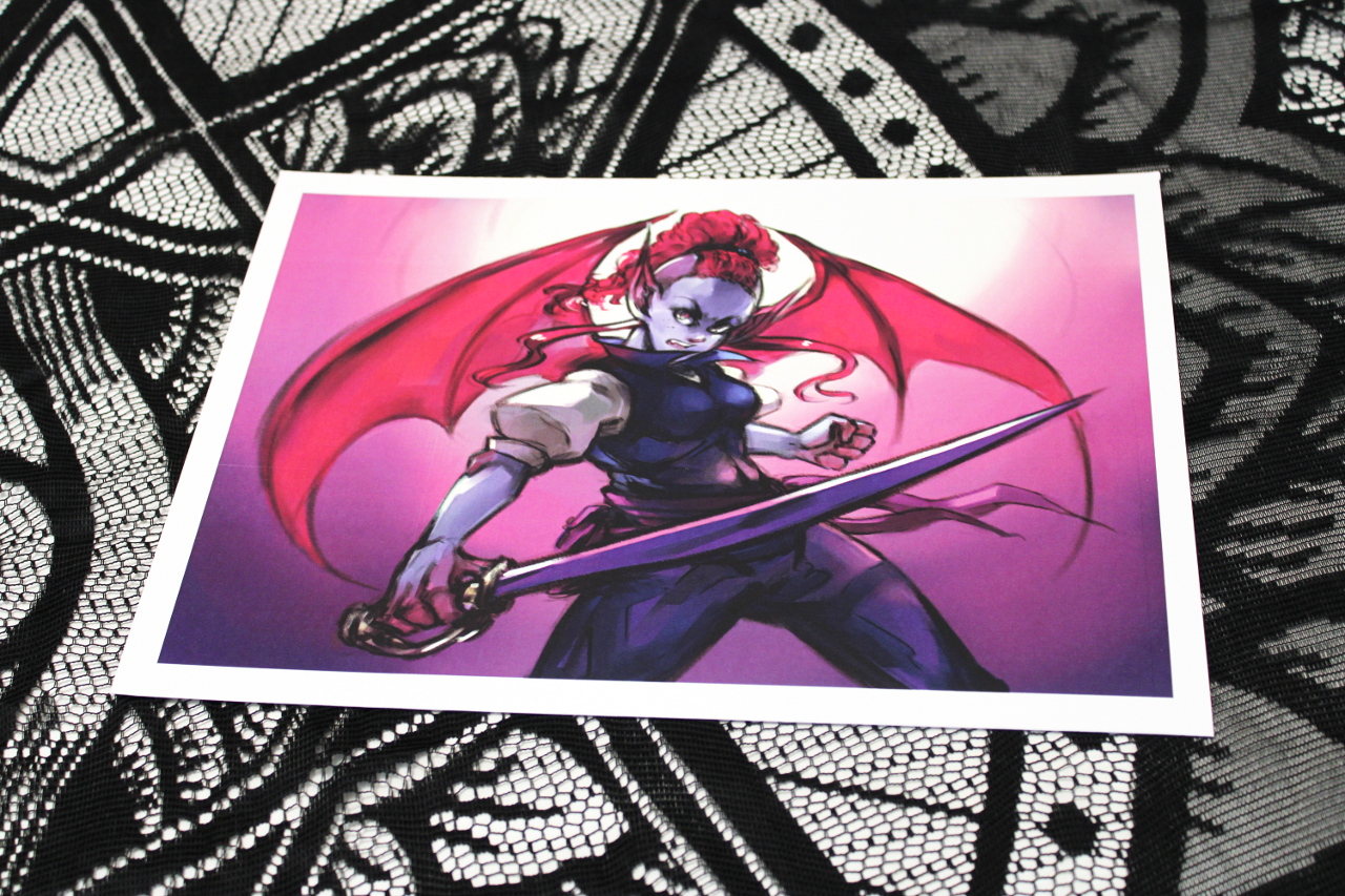 Art print - Nocturna from Crypt of the Necrodancer. Print is 28.5cm x 20.5cm (11.2'' x 8''). Printed on 100lb matte cover cardstock. Each print is signed on the back.