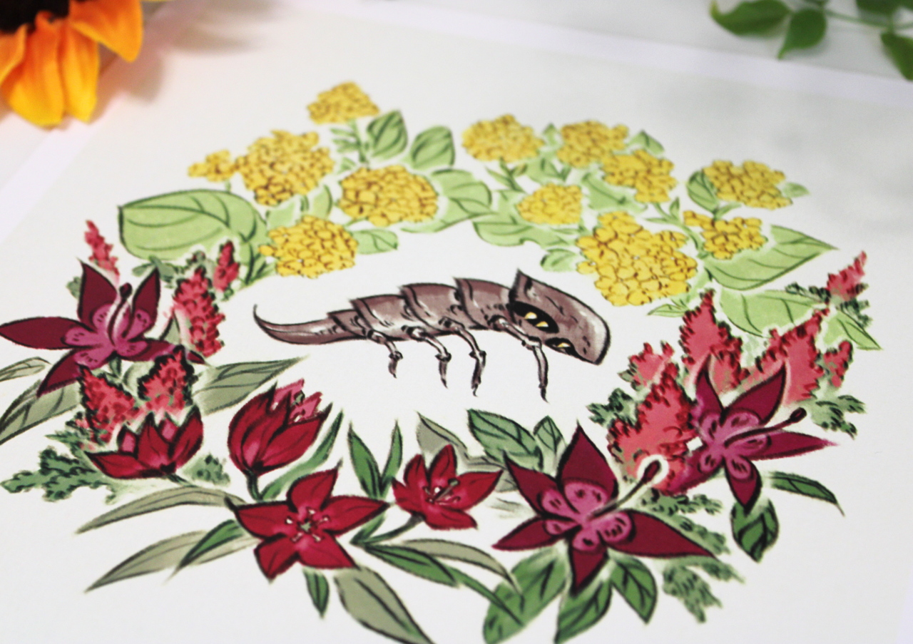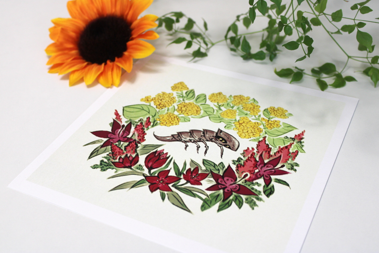 Art print - a scrib from The Elder Scrolls (ee~eee! thump thump thump). Print is 22.5cm x 22.5cm (8.8'' x 8.8''). Printed on 100lb matte cover cardstock. Each print is signed on the back.
