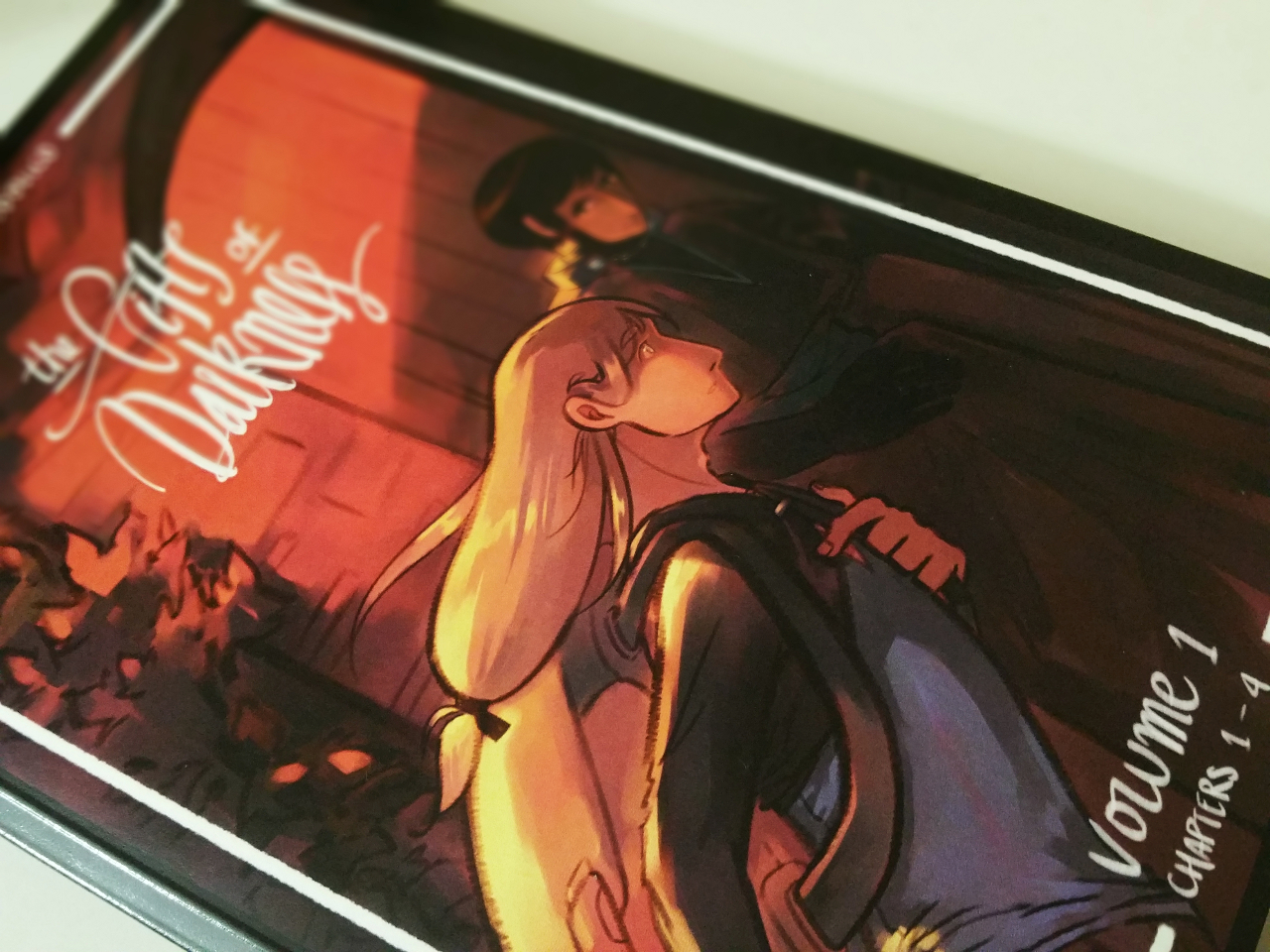 Printed edition of the first four chapters of The Gifts of Darkness! The book is softcover, 14.5cm x 22.5cm (5.7'' x 8.8''), and contains 141 full-color comic pages, plus two special bonus features: a foreword and an interview.