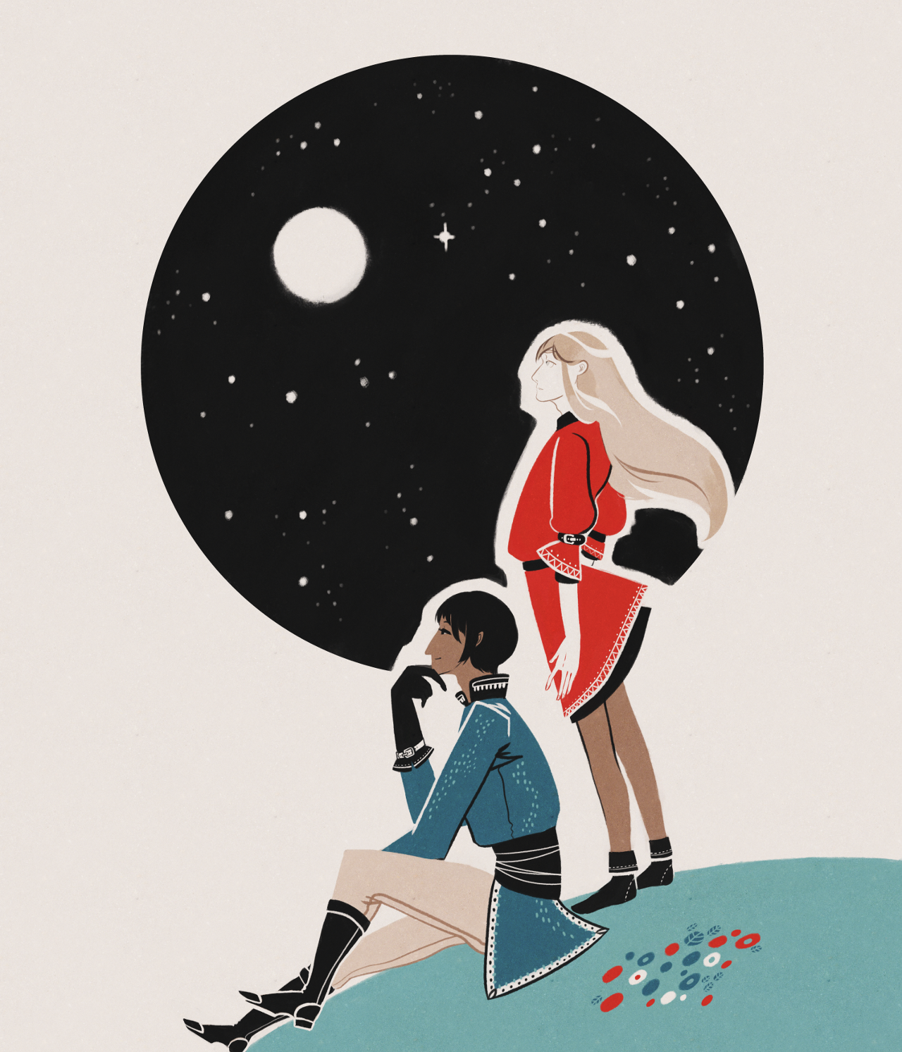 Art print - illustration featuring Val and Adrien from The Gifts of Darkness.