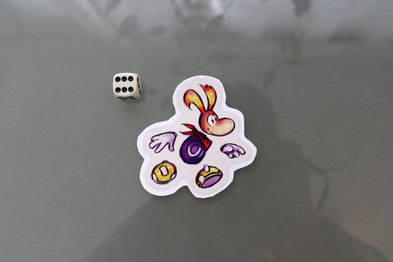 Rayman sticker. Sticker area: 7 cm x 7 cm (2.7'' x 2.7''). Sticker is made of vinyl. It's waterproof! Microwave and dishwasher safe.