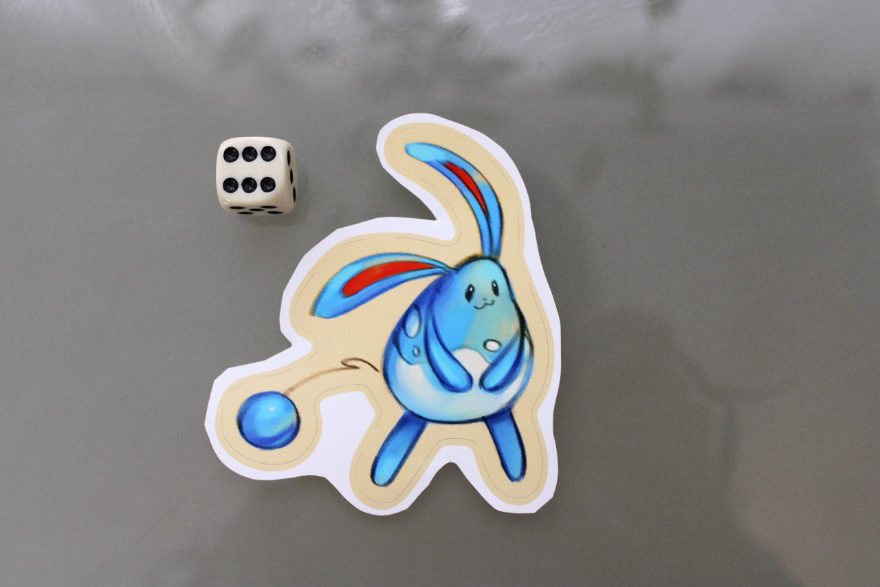 Azumarill sticker. Sticker area: 8 cm x 9 cm (3.1'' x 3.5''). Sticker is made of vinyl. It's waterproof! Microwave and dishwasher safe.