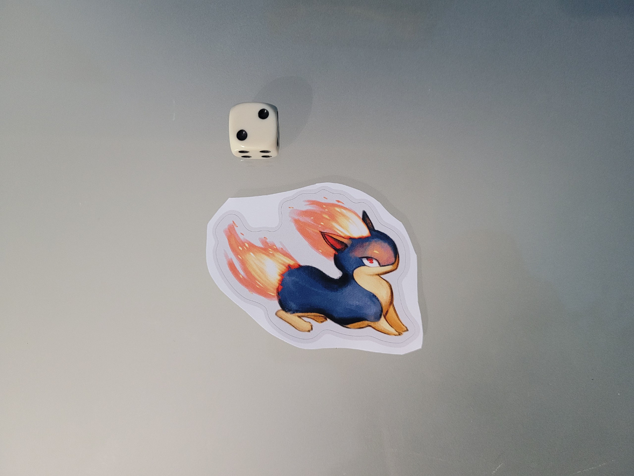 Quilava sticker. Sticker area: 6.5 cm x 5 cm (2.5'' x 2''). Sticker is made of vinyl. It's waterproof! Microwave and dishwasher safe.
