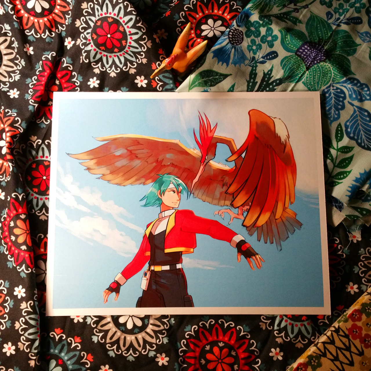 Art print - Spenser and Fearow from Pokemon Ranger. Print is 26.4cm x 21.5cm (10.3'' x 8.4''). Printed on 100lb matte cover cardstock. Each print is signed on the back.