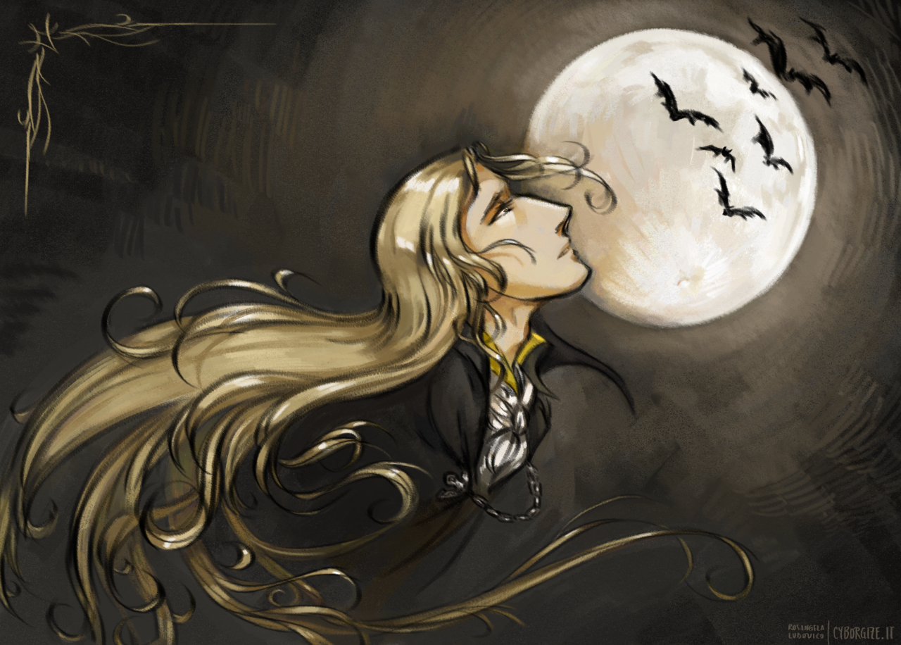 Art print - illustration featuring Alucard from Castlevania. This is a large print, 43cm x 30cm (17'' x 12''). Printed on 100lb matte cover cardstock. Each print is signed on the back.