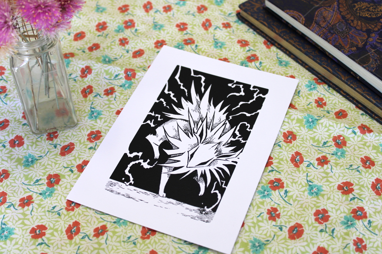 Art print - Jolteon. Print is 14cm x 19.5cm (5.5'' x 7.6''). Printed on 100lb matte cover cardstock. Each print is signed on the back.