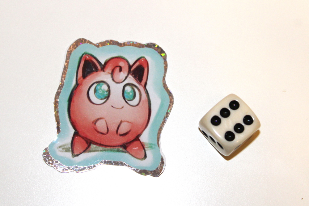 Jigglypuff sticker. Sticker area: 4.5cm x 5 cm (1.7'' x 2''). Sticker is made of vinyl. It's waterproof!