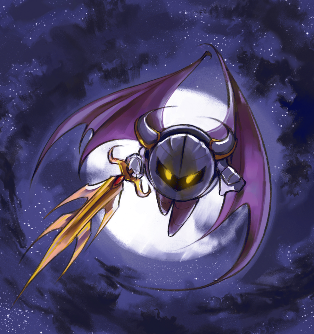Meta Knight sticker miniprint - you can stick it on something, or you can display it as a print. And it has a sparkly border! Sticker area: 9.5 cm x 9.5 cm (3.7'' x 3.7''). Sticker is made of vinyl (glossy). It's waterproof!