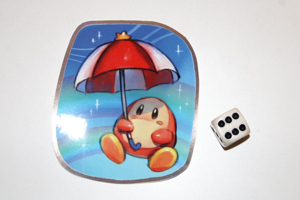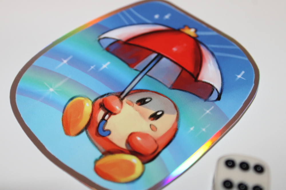 Parasol Waddle Dee sticker miniprint - you can stick it on something, or you can display it as a print. And it has a rainbow holo border! Sticker area: 8 cm x 5 cm (3.1'' x 2''). Sticker is made of vinyl (glossy). It's waterproof!